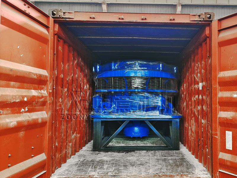 隨著印尼地區(qū)對(duì)當(dāng)?shù)鼗A(chǔ)建設(shè)的大力發(fā)展,砂石料生產(chǎn)的需求也持續(xù)增強(qiáng)。繼上次發(fā)貨不到一個(gè)月的時(shí)間,鄭州中意礦機(jī)為客戶定制的PSG1320圓錐破碎機(jī)設(shè)備正式下線,在工人師傅的相互配合下,這臺(tái)3.2米高、2.9米長的彈簧圓錐破碎機(jī)順利裝箱,即將奔赴海外。