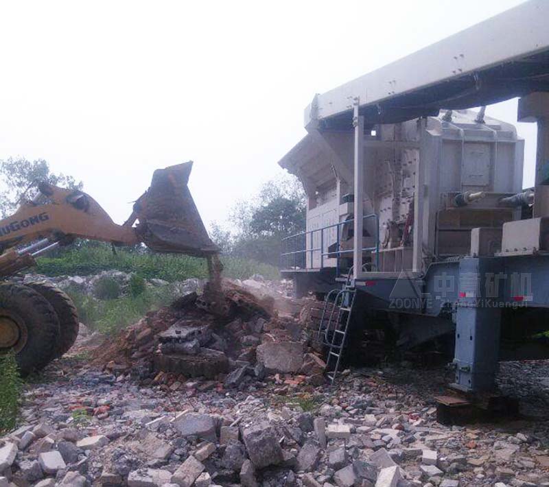 在移動建筑垃圾破碎現(xiàn)場我們可以看到中意量身為客戶打造的兩臺移動站設(shè)備配合工作中,此次選擇了一臺移動破碎站、一臺移動篩分站搭配使用更加符合破碎需求。