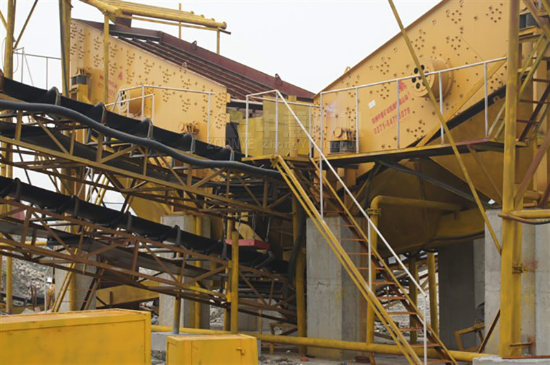 碎石生產(chǎn)線的流程較復(fù)雜.大致為:(料倉(cāng))->振動(dòng)給料機(jī)->顎式破碎機(jī)->反擊式破碎機(jī)->振動(dòng)篩->(成品石料)->沖擊式破碎機(jī)->振動(dòng)篩->洗砂機(jī)->(成品砂).其中,振動(dòng)篩可以共用,也可以分開(kāi)來(lái)使用.各設(shè)備中間以溜槽或皮帶輸送機(jī)實(shí)現(xiàn)不同物理的傳送。