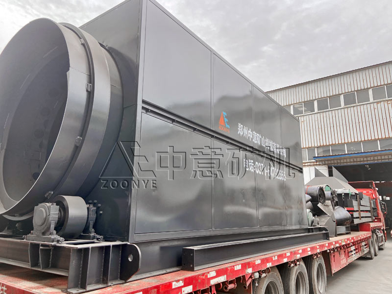 2、初級篩分:經(jīng)破碎除鐵后的骨料被傳輸至滾筒篩設(shè)備處,加裝風機的滾筒篩可以干凈地將物料中的細小紙屑、塑料、木渣等分離出來,再生骨料能夠加工回收利用,輕質(zhì)物能夠重塑加工。